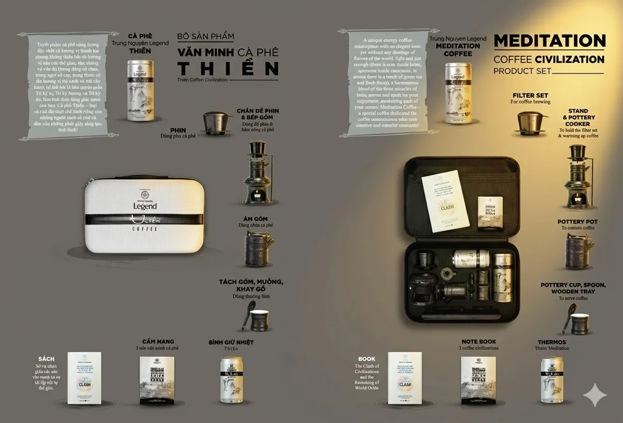At the heart of the set lies premium Zen ground coffee by Trung Nguyên Legend.